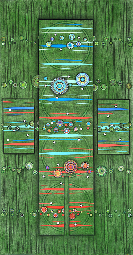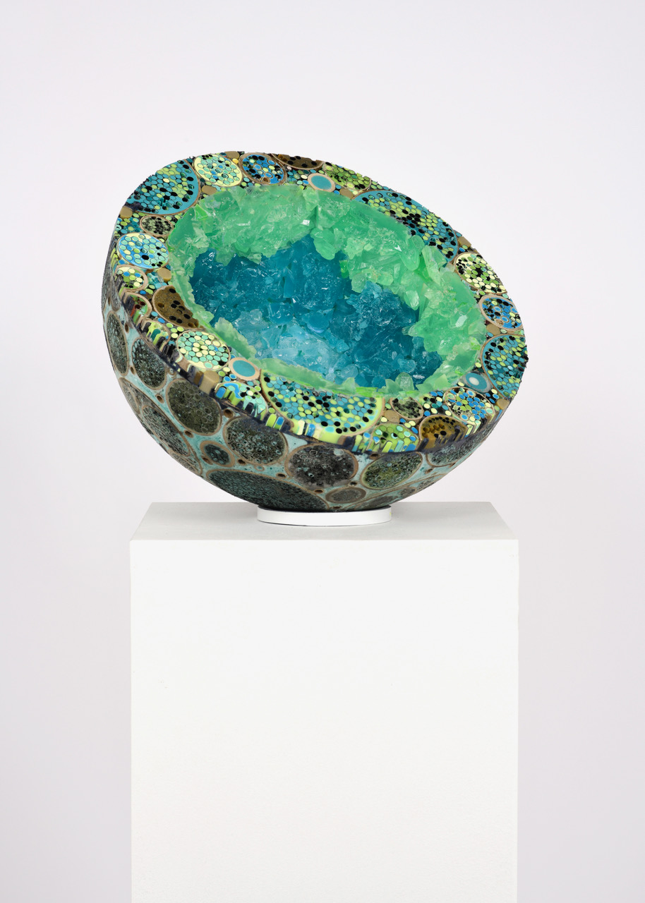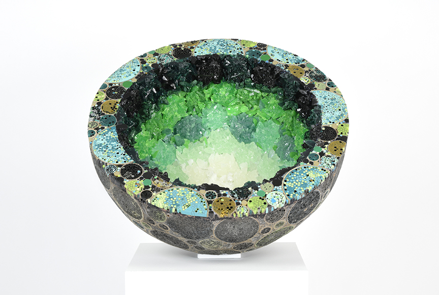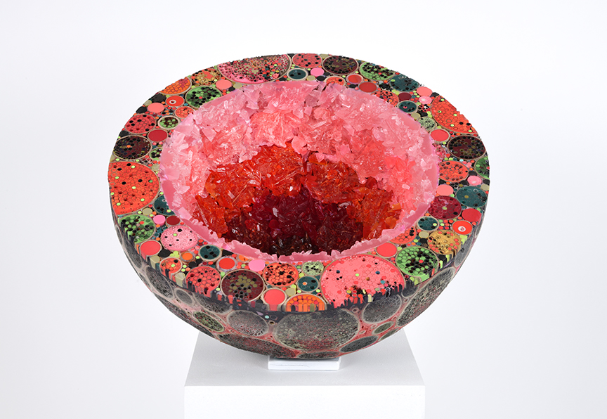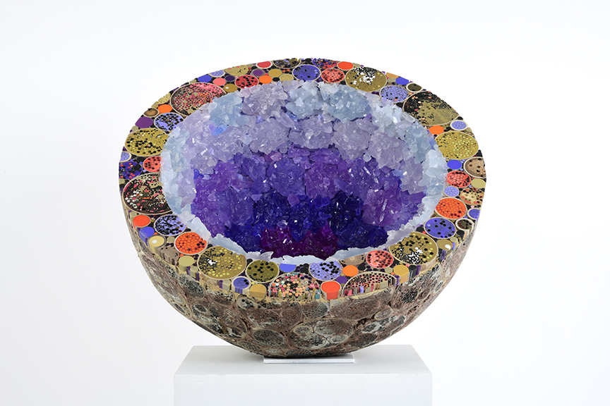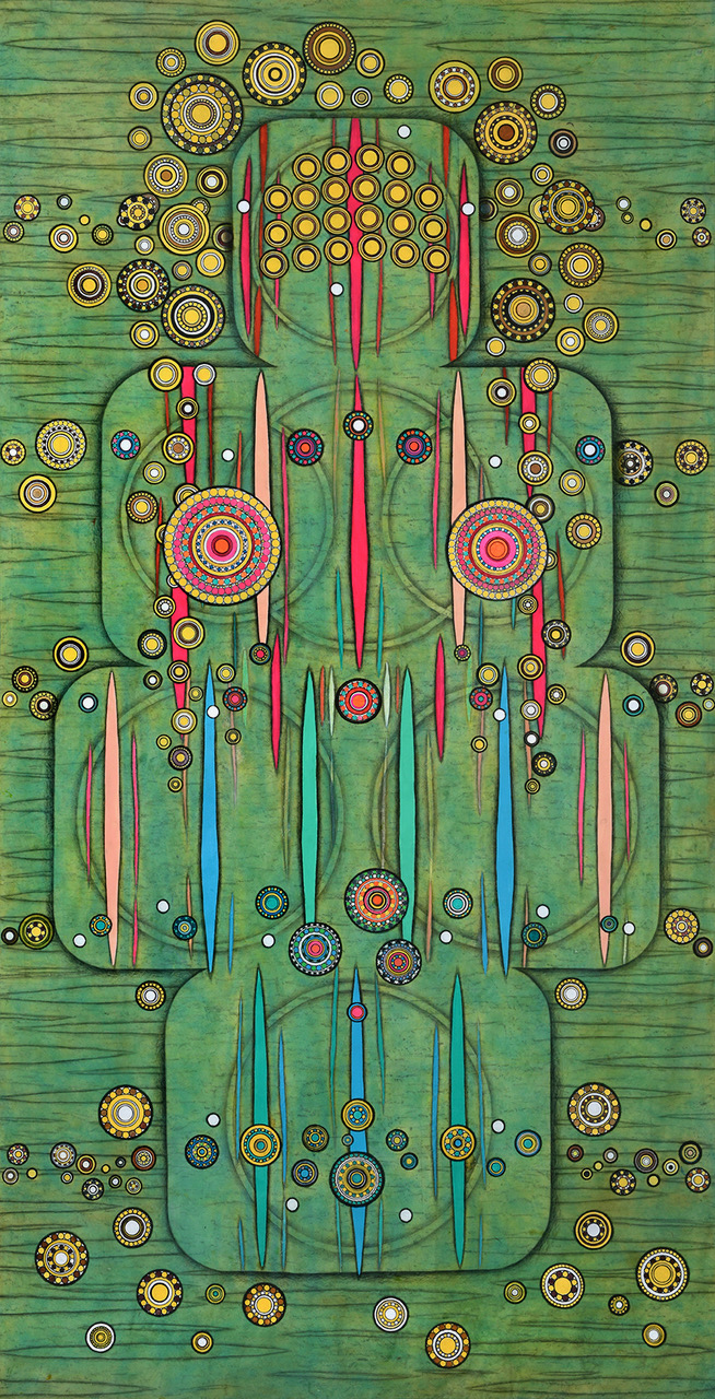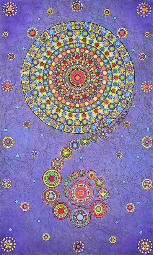 All pieces in the Drawn from Dust series of mixed media drawings were derived from one single piece. This piece, titled Dust, became the inspiration and the original source material for all the resulting drawings. Dust is constructed of shredded aerospace documents, powdered graphite and jawbreaker candy–all compacted into a round disk resembling the solar system.